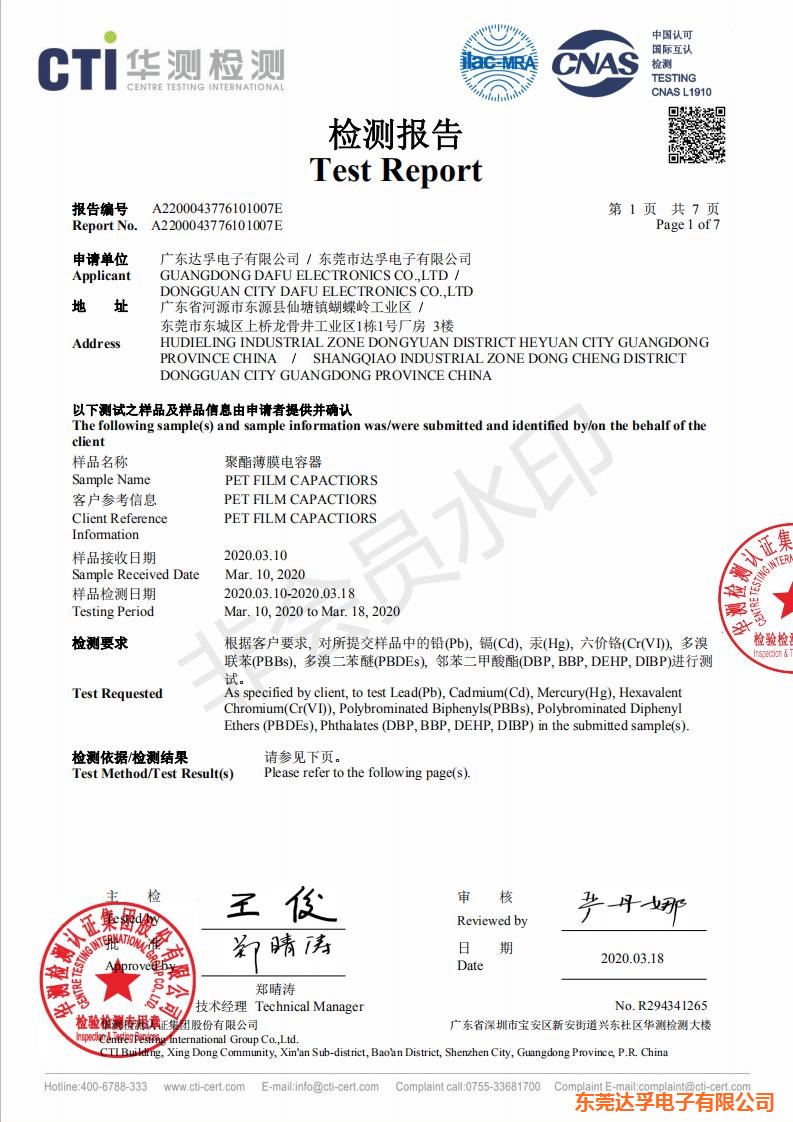滌綸電容RoHS